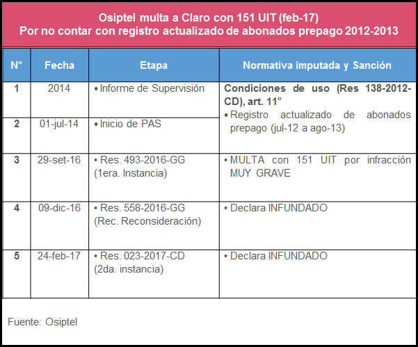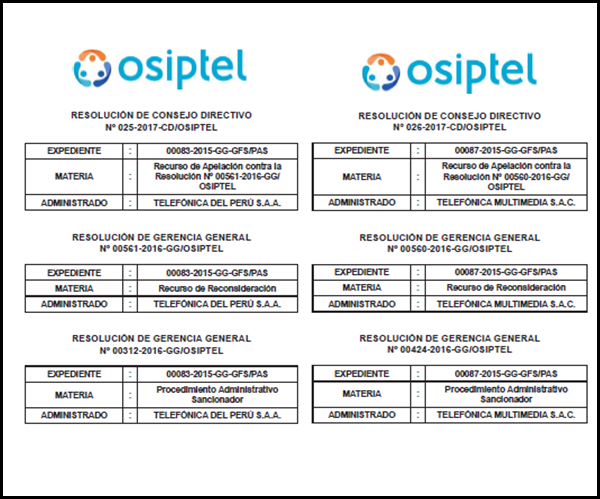 Mediante las Resoluciones N° 025-2017-CD y N° 026-2017-CD publicadas el 27-feb-17, el Consejo Directivo de Osiptel ha declarado infundados los recursos de apelación contra las Resoluciones de la Gerencia General que declaraban infundados los recursos de reconsideración contra la decisión de la Gerencia General de multar a Telefónica del Perú [...]