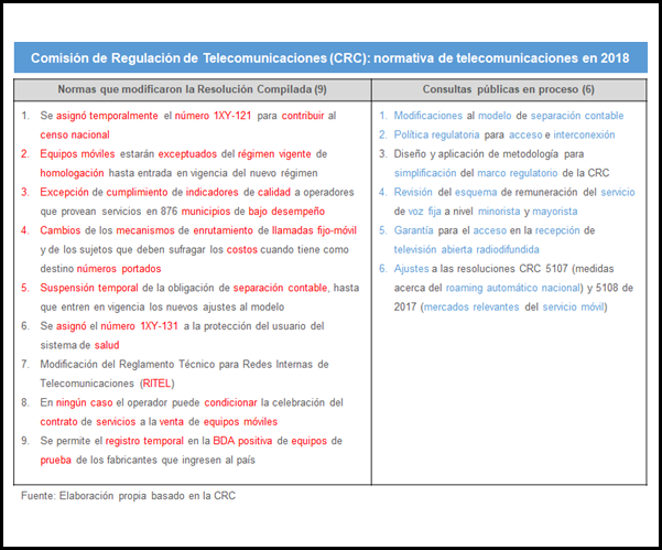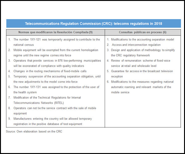 The telecoms regulation in Colombia: the rules published by the CRC in 2018.