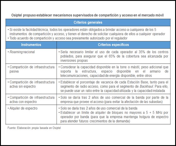 Osiptel propuso establecer mecanismos supervisados de compartición y acceso en el mercado móvil